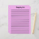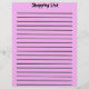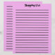 Der Titel und die Zeilen der Einkaufsliste sind vorne mit einem rosa Hintergrund. Auf der Rückseite ist ein rosa Hintergrund mit Linien.