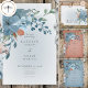 Dieses Hochzeitsdesign besticht durch wunderschöne blaue und verbrannte Orangen-Rost-Eckfloralen auf einem weichen blauen Rechteck auf weißem Hintergrund. Weich und delikat; perfekt für jede Jahreszeit. Erstellt von der einfachen Farmhouse Press.