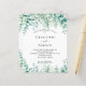 Weißer Hintergrund mit Eukalyptusgrün und Waldfarnen. Personalisieren und fügen Sie Ihre Namen und die Details. Für bezaubernde Waldhochzeiten.