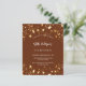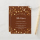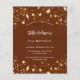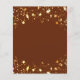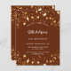 Brauner Hintergrund mit goldenen Sternen. Personalisieren und fügen Sie einen Namen und Party-Details hinzu. Der Name wird mit einem handgeschriebenen Stilskript geschrieben, mit weißen, farbigen Buchstaben. 1 Blatt = 1 Einladung mit Druckkante bis Kante.