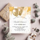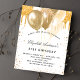 Für einen eleganten 21. Geburtstag (oder jedes Alter). Ein schick weißer Hintergrund. Dekoriert mit Imitaten Gold Glitzer Tropfen, Farbe Tropfen Look und Ballons. Personalisieren und fügen Sie einen Namen, Alter 21 und Party-Details. Der Name wird mit einem handgeschriebenen Stilskript geschrieben. 1 Blatt = 1 Einladung mit Druckkante bis Kante.