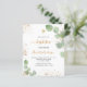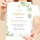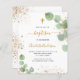 Weißer Hintergrund mit Eukalyptusgrün und Imitaten goldener Glitzer Staub. Personalisieren und die Kinder Name und Zeremonie Details. Schwarze und goldfarbene Buchstaben. Geschlechterneutral. Zurück: weißer Hintergrund mit goldenen Imitaten Glitzer Staub.