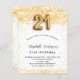 Für ein elegantes Party zum 21. Geburtstag. Ein schick weißer Hintergrund. Dekoriert mit Imitaten Gold Glitzer, Glitzern. Personalisieren und fügen Sie Namen, Alter und Party Details hinzu. Der Name wird mit einem handgeschriebenen Stilskript geschrieben. Nummer 21 mit Schriftart im Ballonstil.