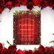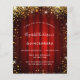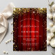 Eine moderne, stilvolle und glamouröse Einladung für eine Quinceañera, 15. Geburtstagsfeier, Hollywood Thema. Ein roter Hintergrund mit Imitaten goldenem Glitzer Staub. Ein roter Kinovorhang als Hintergrund Der Name ist mit einem modernen handgeschriebenen Stift geschrieben. Personalisieren Sie Ihre Party-Daten und fügen Sie sie hinzu.