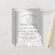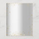 Eine moderne, stilvolle und glamouröse Einladung zu einer Quinceañera, 15. Geburtstagsfeier. Ein silbermetallicer Hintergrund mit Imitaten, goldenen Glitzer Glitzern und einem weißen Kleid. Der Name ist mit einem modernen handgeschriebenen Stilskript geschrieben. Personalisieren Sie Ihre Party-Daten und fügen Sie sie hinzu.