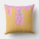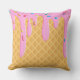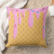 Dieses Kissen mit individueller Kissenform ist mit einer leckeren Eistüte ausgestattet. Der Hintergrund ist ein Waffelkonus. Strawberry rosa Zuckerguss Tropfen mit Regenbogensprinkles tropfen von oben.