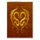 Zwei goldene gelbe Stammes- Drachen stellen sich in diesem aggressiven symmetrischen Entwurf gegenüber. Die winged Schlangen haben den Auftritt von geworfen werden aus festem Eisen heraus, das einen atemberaubenden Blick 3D schafft. Ein Schatten fällt auf den reichen braunen Hintergrund, der die Drachen macht, scheinen, gerade über die Oberfläche dieser Karte zu schwimmen.