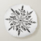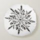 Schöner eisiger Kristall facettierte Schneeflocke über einem weißen Hintergrund. Dieses runde Kissen würde eine nette Touch zu Ihrem themed Dekor des Feiertags oder des Winters machen.