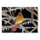 Weiblicher Kardinal ist von eisigen Ästen umgeben.