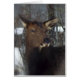 Eine Elche geht am Ufer entlang und sucht im Winter nach Essen.