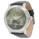 Uhr, Vintage Männeruhr mit schwarzem Lederarmband