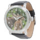 Uhr, Vintage Männeruhr mit schwarzem Lederarmband