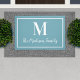 Schalten Sie Ihren Zuhause mit dieser eleganten, maßgeschneiderten Monogramm-Doormat in Aqua / aquamarin Blau und Weiß. Hinweis: Die Farben können geändert werden. Personalisieren Sie mit dem Nachnamen Ihrer Familie im Skript und einem Serifenstil Monogramm Initial. Das Design umfasst einen gerahmten Rahmen.