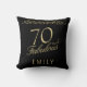 Elegantes Schwarzes 70 und fabelhaftes Ornament 70. Geburtstagskissen. 70 und fabelhafter Text in trendigem goldenen Drehbuch und Gold-Ornament auf schwarzem Hintergrund. Personalisieren Sie es mit Ihrem Namen und Ihrem Alter, und machen Sie ein personalisiertes Kissen.