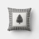 Elevate your living room decor with this black and white modern farmhouse gingham throw pillow this festive season. This pillow is printed with a classic black and white gingham pattern on both sides. On top of this gingham background sits a beautiful hand-drawn black Christmas tree with a strong vintage vibe, all on top of a white square with an inner black frame. This pillow is stylish and will add some classic classy vibes into the room. This template is ready for you to customize.