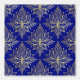 Ein wunderschönes klassisches Viktorianisches inspiriertes Damastmuster mit einer modernen Drehung in den Imitaten gold und dunkelblau mit einem Blumenlotus Blume Design.