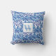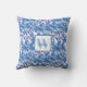 Elegantes blaues, blumengeschmücktes Kissen mit Monogramm. Hübsche sommerliche Blumenmuster in den Aquarellen werden jedes Zimmer aufhellen. Einfache Änderung von Monogramm und Name von der Produktseite.
