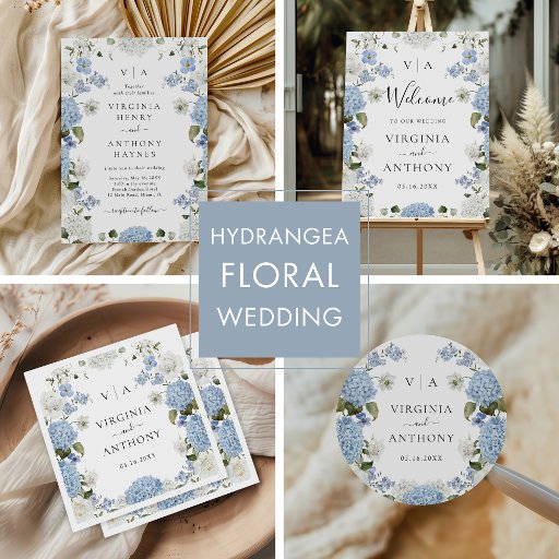 Elegant Blue Hydrangea White Roses Floral Wedding Einladung