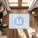 Eleganter Blue Stripes Monogram Doormat.