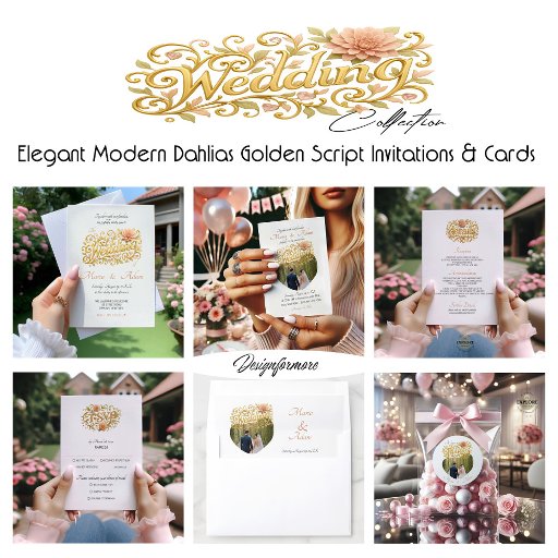 Elegant Blush Dahlias Golden Script Wedding PhotoDesignt von Houria Sabrine