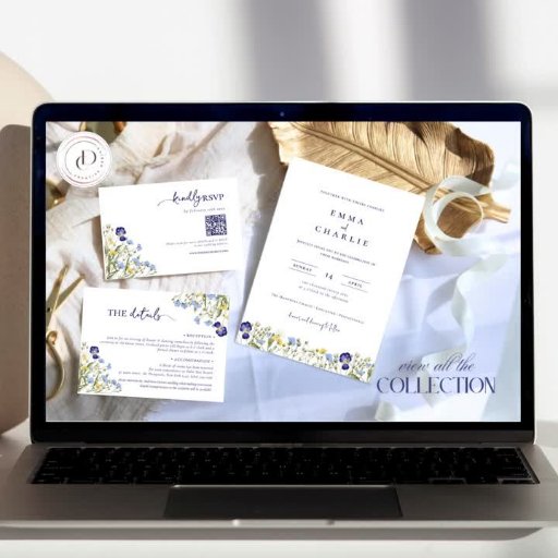 Elegante Boho Wildblumen Blue Script Wedding Einladung in wenigen Schritten anpassen!