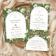 A sophisticated botanical design featuring rich green foliage and soft ivory blooms, framed within a timeless arched layout. The deep, nature-inspired tones bring a sense of depth and refinement, while the clean typography keeps the overall look elevated and effortless.