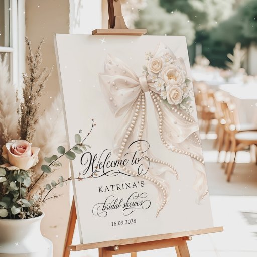 This elegant Bridal Shower Invitation features a timeless neutral palette with a romantic pearl bow, soft ivory florals, and graceful calligraphy typography. Delicate pearl details and a sheer ribbon design create a luxurious, refined look perfect for a classic, coquette, or grandmillennial bridal celebration. Matching items are available.