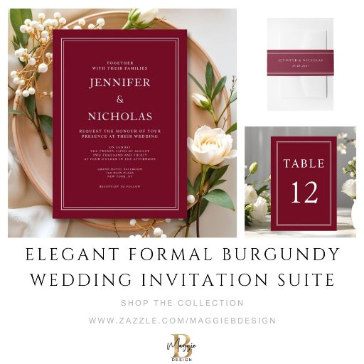 Elegant Formal Burgundy Wedding Invitation SuiteDesignt von Maggie B Design