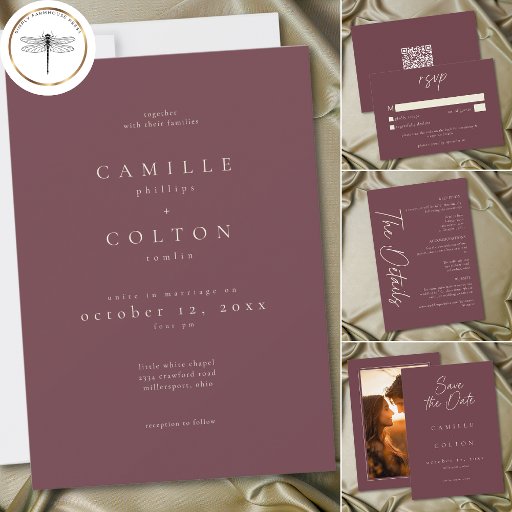 Elegant Burgundy Wine Minimalist Wedding Save The Date