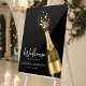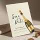 An elegant black and gold Save the Date design featuring a popping champagne bottle, symbolizing celebration and timeless romance. The dark background paired with golden accents creates a luxurious, modern wedding aesthetic perfect for formal, evening, or upscale city weddings. Ideal for couples seeking a classy yet bold announcement that sets the tone for a chic and memorable wedding celebration.