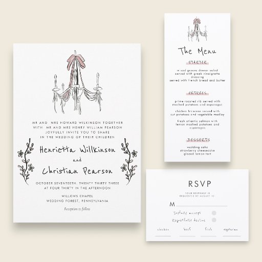 Elegant Chandelier Pink Bow Sketch Save the Date
