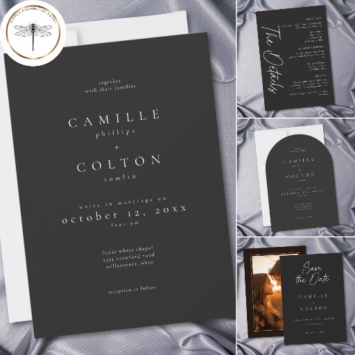 Elegant Charcoal Black Minimalist WeddingDesignt von Kathe Santillo