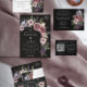 Elegant Dark Floral Cascade Black Burgundy All In One Einladung