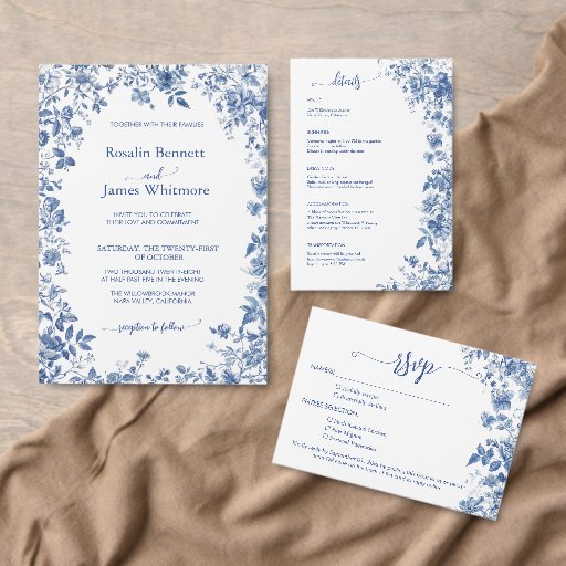 Elegant Dusty Blue Toile Floral Wedding SuiteDesignt von Paola Garcia Broeders