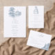 Make your wedding timeless with this elegant dusty blue vintage toile wedding save the date design. Featuring a detailed elegant bow sketch with a regal crest on the back, it is perfect for a sophisticated ceremony. This classic look adds a refined touch to your historic home or garden celebration. Created by Simply Farmhouse Press.