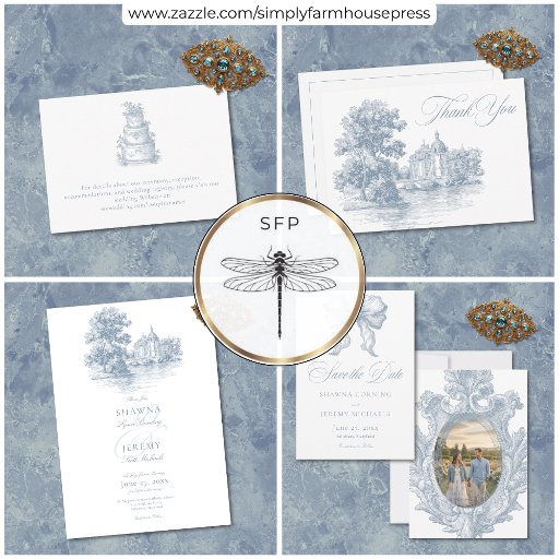 Elegant Dusty Blue Toile French Manor Wedding Save The Date