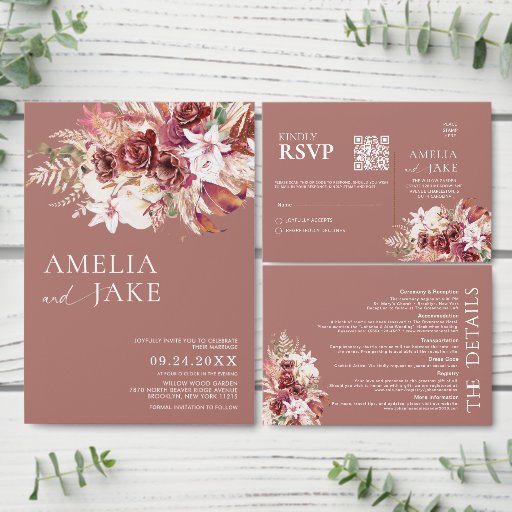 Elegant Dusty Rosewood Burgundy Blush Wedding Einladung
