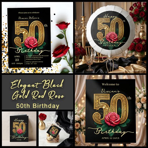 Elegant Black Gold Red Rose 50th Birthday PartyDesignt von Kristina Lj Petrovska