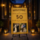Feiert 50 Jahre Liebe und Erinnerungen! Dieses Gold 50. Wedding Jubiläum Banner ist der perfekte Weg, um einen goldenen Meilenstein mit Eleganz und Stil zu feiern. Mit zwei hochgeschätzten Fotos - Ihrem Hochzeitstag und jetzt - ehrt dieses Banner Ihre gemeinsame Reise wunderbar. Machen Sie dieses atemberaubende Jubiläumsbanner einzigartig, indem Sie Namen, Daten und Bilder hinzufügen und so eine herzliche Hommage an ein Leben voller Liebe und Engagement schaffen. Ob Sie ein Party zum 50. Hochzeitstag, eine Verlängerung des Gelübdes oder eine Ansammlung zum Familienfeiern veranstalten - dieses Banner bildet einen wunderschönen Hintergrund für die Eingangswände, die Desserttische oder die Kabinen zum Foto. Dieses vielseitige Innen- und Außenbanner wurde mit eleganter Typografie und zeitlosem Goldmotiv gestaltet und verleiht jedem Anlass eine elegante Touch. Hang es stolz und ließ deine Erinnerungen glänzen, während du dieses einmalige Ereignis markiert hast!