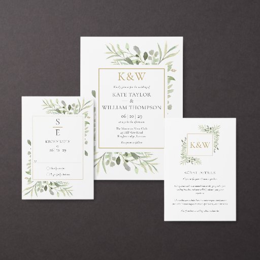 Elegant Initials Monogram Greenery Wedding SuiteDesignt von Thisisnotme Designs