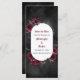 Dunkle und launische Save the Date Karte mit Till Death Do Us Part Sprichwort, dunkle rote Rosen, Fledermäuse und Spinnennetze. Hat einen rauchigen schwarzen Aquarell-Hintergrund. Blakkletter Typografie trägt zum gotischen Gefühl der Ankündigung bei. Schauen Sie sich auch unsere Koordinierungsaufgaben an.