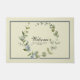 Diese Begrüßungsmatte verfügt über einen Eukalyptuskranz in Aquarell, eine klassische Begrüßungsbotschaft und Ihren Familiennamen.