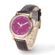 Eine elegante und festliche Armbanduhr mit den Worten "Merry & Bright" am Rande in eleganter Schriftzypografie. Der Text ist weiß, auf einem reichen schwarzen Johannisbeeren magenta Gesicht. Personalisieren Sie diese stilvolle Uhr mit Ihrem Namen oder einem anderen Text für eine individuelle Touch.