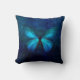 Moody schwarz und blau "batik" Effekt Hintergrund mit einem irisierenden blauen Schmetterling. Dieses elegante blaue Schmetterlingskissen-Design ist perfekt für sich selbst oder als einzigartiges Geschenk für jemanden, der etwas Besonderes möchte. ~ * Teil der Kollektion "Blauer Schmetterling".