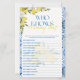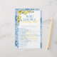 Feiern Sie Mama-to-be mit einer fröhlichen und interaktiven Drehung mit unserem Matching Lemon Mediterranean "Who Knows Mommy Best" Game! Dieses Spiel, das perfekt auf die Elegant Lemon Baby Shower Kollektion abgestimmt ist, zeichnet sich durch lebendige Aquarelllemonen, zarte Blumenakzente und einen zeitlosen, blau-gelb gefliesten Hintergrund aus, der den Reiz des Mittelmeers erweckt. Die Gäste werden sich bei der Beantwortung von Fragen über das zukünftige Mama, das strahlende Lachen und die süßen Momente amüsieren, während sie testen, wie gut sie sie kennen. Egal ob Sie ein Party im Frühjahrsgarten, eine Sommerdusche oder ein italienisches Event beherbergen, dieses stilvolle Spiel bietet die perfekte persönliche Touch.