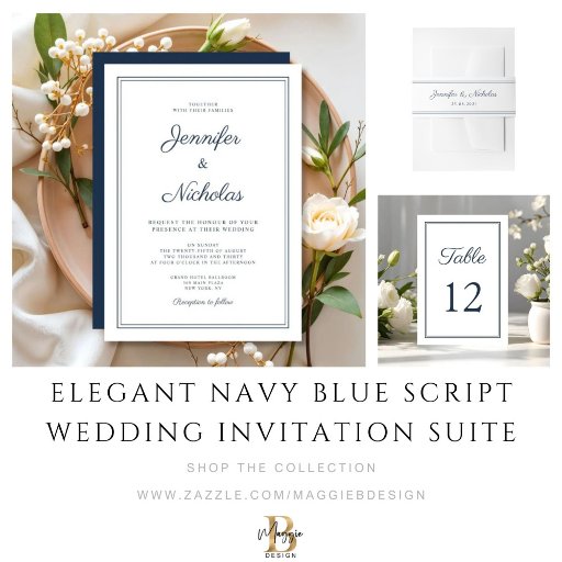 Elegant Navy Blue Script Wedding Invitation SuiteDesignt von Maggie B Design