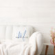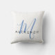 Elegantes, modernes, weißes Monogramm-Drehkissen mit blauer Schrift. Ein elegantes blaues Skript-Monogramm kombiniert mit einem sauberen schwarzen San-Serif-Schriftart verleiht dem Ganzen einen zeitgemäßen Look.