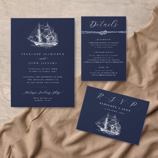Elegant Navy Blue Nautical Ship Wedding SuiteDesignt von Jessica Amber Duggan