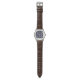 "This sophisticated watch features a striking navy blue dial adorned with classic Roman numerals, encased in a polished silver-tone frame. Its elegant brown embossed leather strap adds a touch of timeless luxury, making it a perfect accessory for both formal occasions and refined everyday wear. The subtle geometric pattern on the watch face enhances its distinguished design."