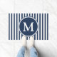 Elegant Navy Blue Stripes Monogram Fußmatte
